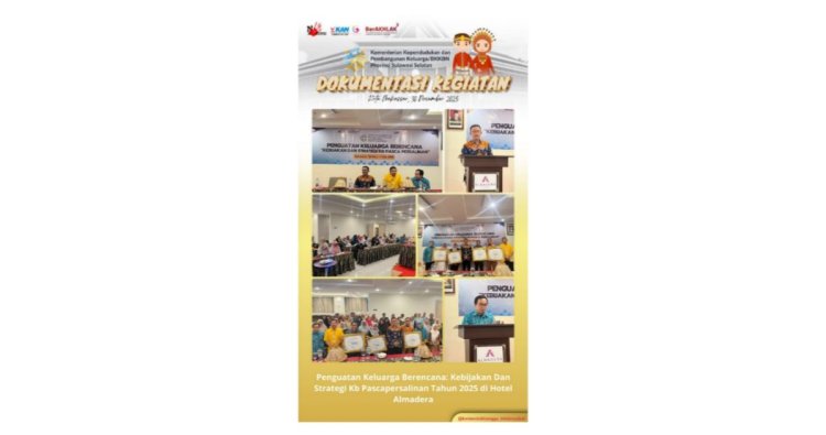 Makassar (30 November 2025) - Kemendukbangga/BKKBN Provinsi Sulawesi Selatan melaksanakan Kegiatan Penguatan Keluarga Berencana: Kebijakan dan Strategi Kb Pasca Persalinan Tahun 2025 yang dilaksanakan di hotel almadera yang dihadiri kepala bidang KB dan ketua IbI di 24 Kabupaten/kota Sulawesi Selatan.