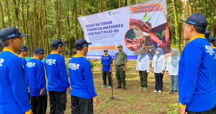 Banyuwangi Barat – Perum Perhutani KPH Banyuwangi Barat bersama dengan UPT Pengelolaan Sumber Daya Air (PSDA) Wilayah Sungai Sampean Setail di Bondowoso dalam rangka memperingati Hari Bakti PU yang ke 80 dengan melakukan penanaman pohon disempadan Sungai Badeng di sekitaran Wisata Suwiss Songgon Petak 6a RPH Bayu BKPH Rogojampi, pada Selasa (09/12/2025).