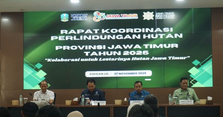 Banyuwangi Barat – Perum Perhutani KPH Banyuwangi Barat mengikuti kegiatan Rapat Kordinasi (Rakor) Perlindungan Hutan Provinsi Jawa Timur tahun 2025 dengan tema “Kolaborasi Untuk Lestarinya Hutan Jawa Timur” yang diselenggarakan di kantor Dinas Kehutanan Provinsi (Dishut Prov) Jawa Timur jalan By Pass Nomor 5 Manyar, Sedati Agung, Kecamatan Sedati, Kabupaten Sidoarjo, pada Kamis (27/11/2025).