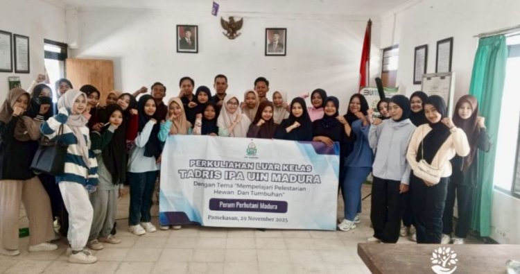 Madura - Perhutani (04/12/2025) | Perhutani Kesatuan Pemangkuan Hutan (KPH) Madura menfasilitasi kegiatan perkuliahan luar kelas yang dilakukan oleh 39 Mahasiswa Universitas Islam Negeri (UIN) Madura Fakultas Tarbiyah, Prodi Tadris Ilmu Pengetahuan Alam bertempat di Aula Siemonget Kantor Perhutani KPH Madura, Kamis (04/12/2025).