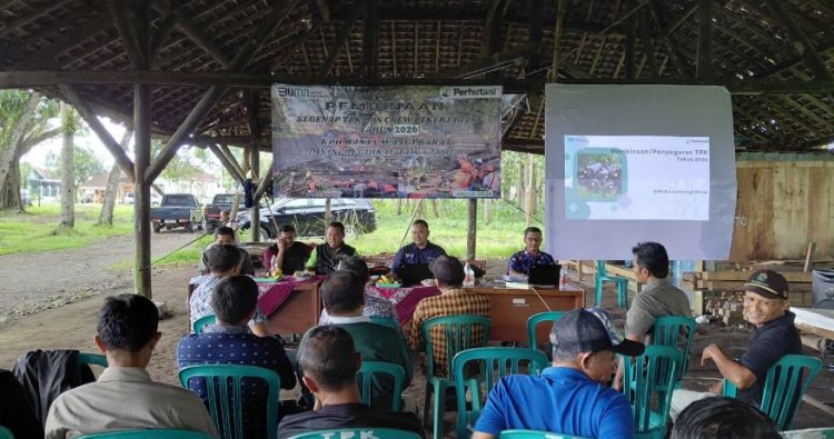 Banyuwangi Barat – Perum Perhutani KPH Banyuwangi Barat melakukan kegiatan safari pembinaan kepada segenap karyawan Tempat Penimbunan Kayu (TPK) lingkup KPH Banyuwangi Barat (TPK Suko, TPK Songgon, TPK Kalisetail dan TPK Gunungsari), dan tenaga kapling TPK Kalisetail di Barak Blandong TPK Kalisetail di Dusun Parastembok, Desa Jambewangi, Kecamatan Sempu – Banyuwangi, pada Sabtu (10/01/2026).